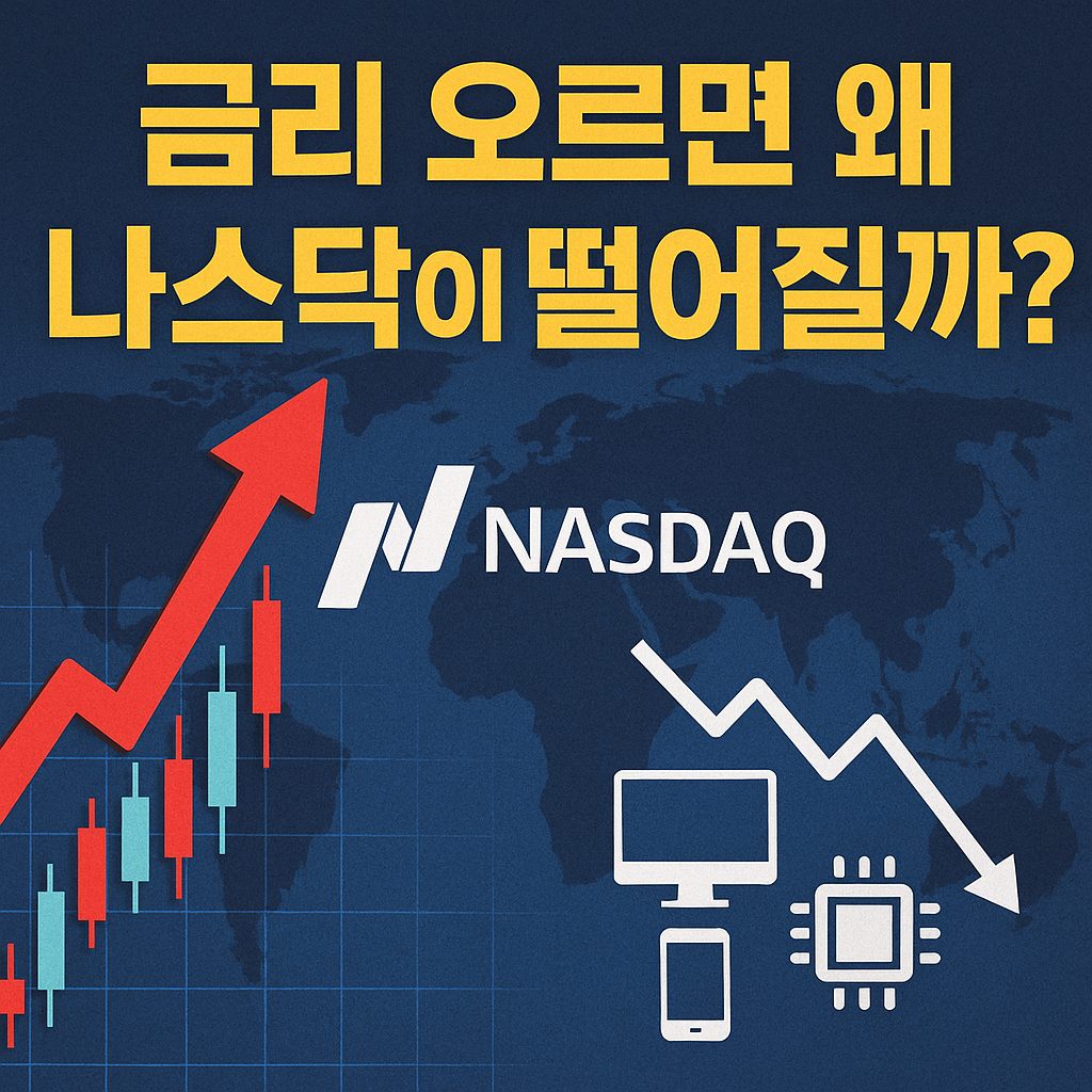 금리가 올라 예금·채권의 수익률이 높아지면, 위험자산인 주식에서 자금이 빠져나가고 안전자산으로 이동하게 됩니다. 이로 인해 나스닥도 타격을 받습니다.